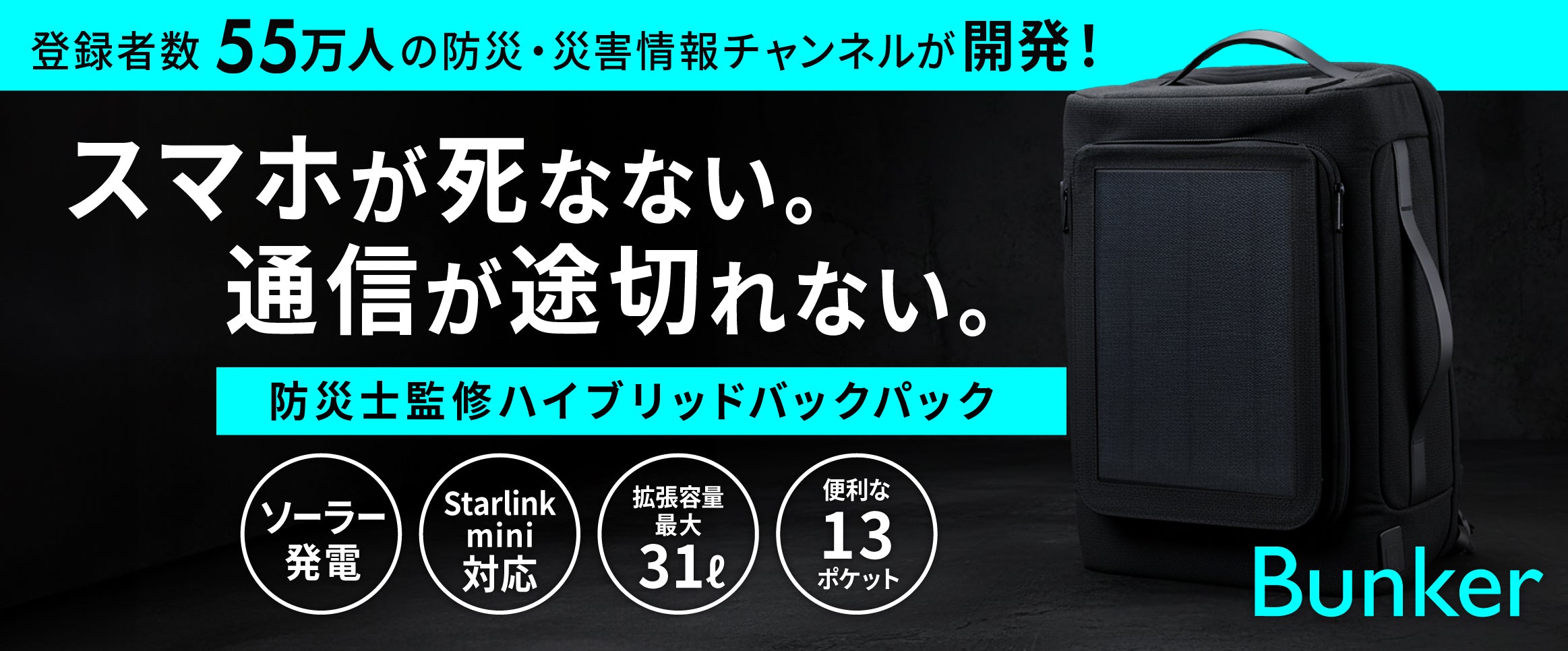 日本初※ 電源と通信を持ち運べる「防災ハイブリッドバックパック」 Bunker Signal ...